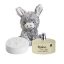 Kaloo Les Amis est le parfum Premium de la gamme Kaloo. Constitué d’une céramique finement élaborée, le bouchon peut vaporiser la fragrance et la diffuser ensuite délicatement dans la chambre d’enfant. Le parfum est sans alcool, testé cliniquement et absolument inoffensif pour bébé. Chaque senteur est joliment empaquetée avec une douce peluche âne.